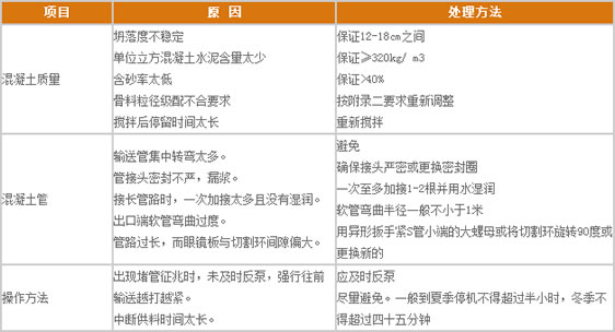 由于混凝土質(zhì)量差或輸送管布置不合理,均會(huì)造成堵塞,但都可以通過(guò)操作人員的控制得以避免。
