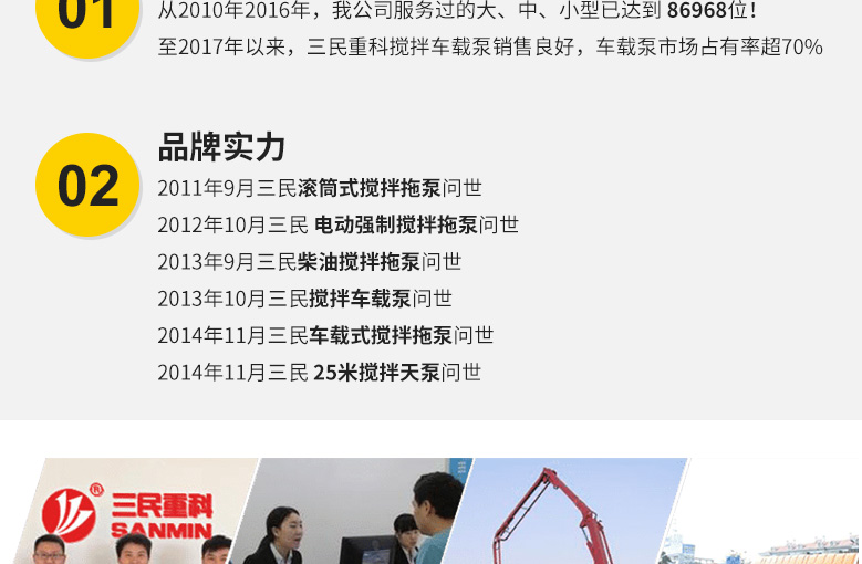 簡介:25米混凝土輸送泵車是三民重科專為隧道施工設(shè)計的一款電動防爆混凝土泵車,解決了隧道施工方面臨的“用拖泵需要布管,工作效率低;用泵車體積過大,且有尾氣不安全”的難題。