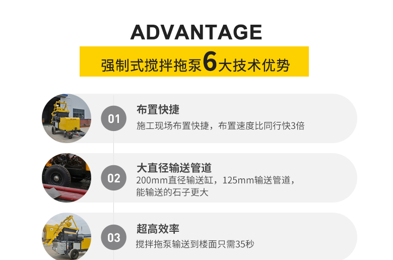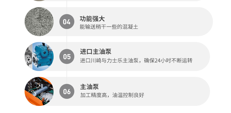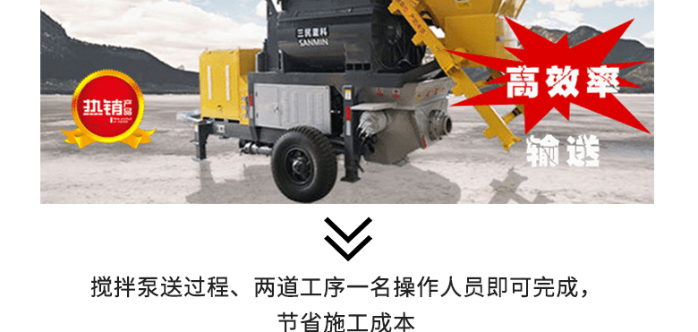 簡介:小型泵車:強制式攪拌拖泵是三民重科在本公司滾筒式攪拌拖泵的基礎上研制而成的第四代產(chǎn)品,該混凝土攪拌拖泵創(chuàng)新地采用了攪拌速度快、混凝土攪拌質(zhì)量好的強制式雙臥軸攪拌,是一種小型混凝土泵車