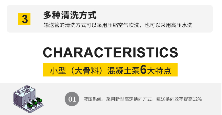 簡介:三民重科生產(chǎn)的小型(大骨料)混凝土泵也屬于混凝土輸送泵,它的性能特點很多,比如高效液壓系統(tǒng),采用新型高速換向方式,泵送換向效率提高12%;大排量泵送系統(tǒng),吸入效率提高6%,滿足各種工況需求。