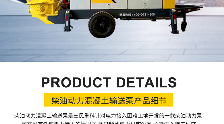 簡介:柴油動(dòng)力混凝土輸送泵是三民重科新開發(fā)的一款柴油動(dòng)力泵,主要是針對那些對于電力接入困難的工地而開發(fā)的,此種混凝土輸送泵可以再?zèng)]有任何電力接入的情況下,在工地能夠照常進(jìn)入施工程序。
