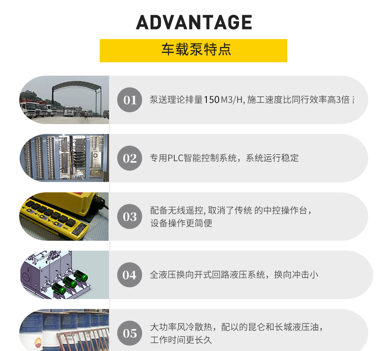 4、車載泵屬于公司王牌產(chǎn)品,在泵車行業(yè)有著傲人的口碑與成績,從新到舊我為泵車一共一整套服務(wù)方案