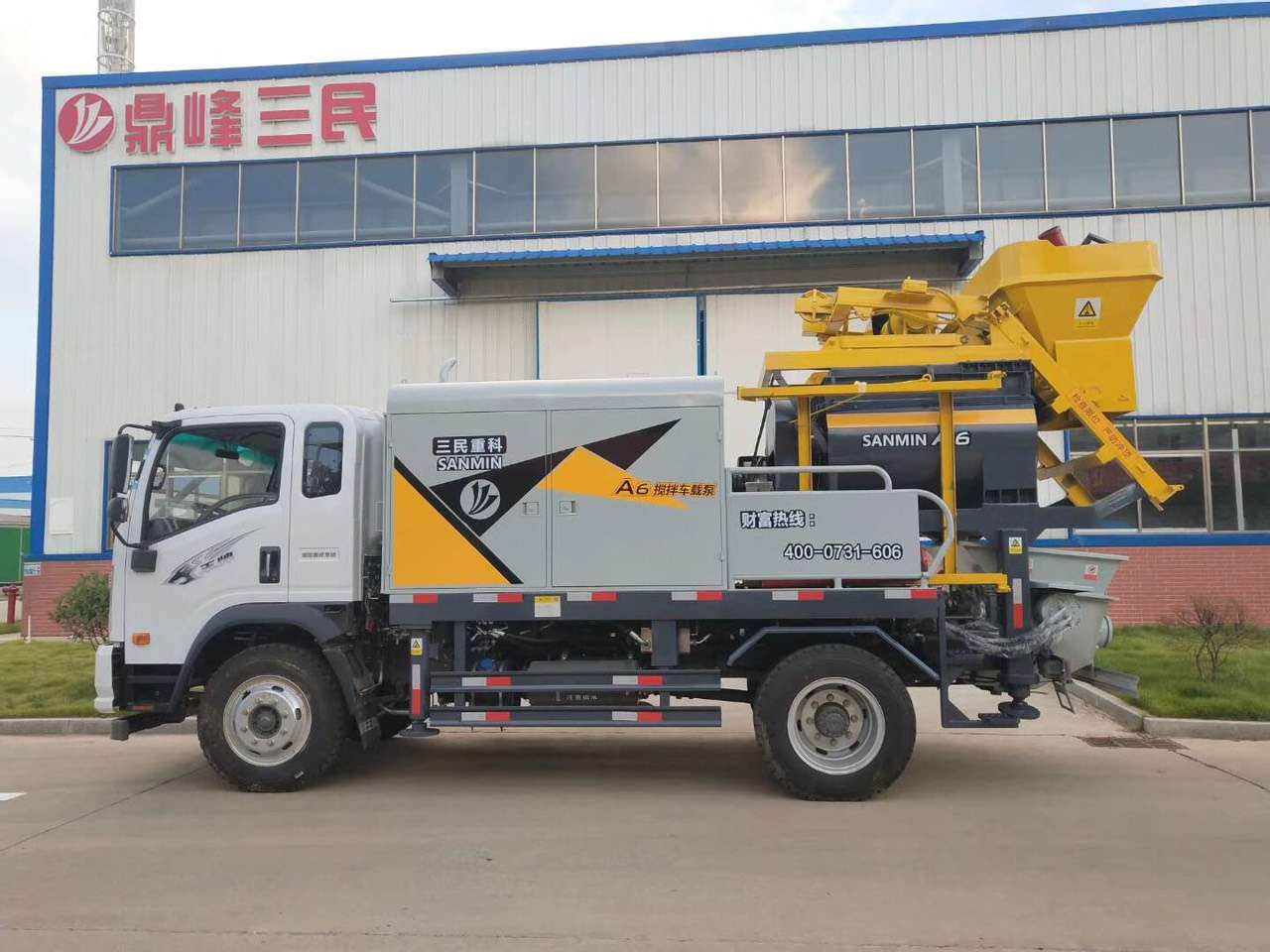 三民重科混凝土攪拌拖泵,攪拌車載泵,攪拌天泵,廠家提醒您:在年底購買一臺混凝土攪拌泵送一體機(jī)化設(shè)備無疑是一個明智的選擇!